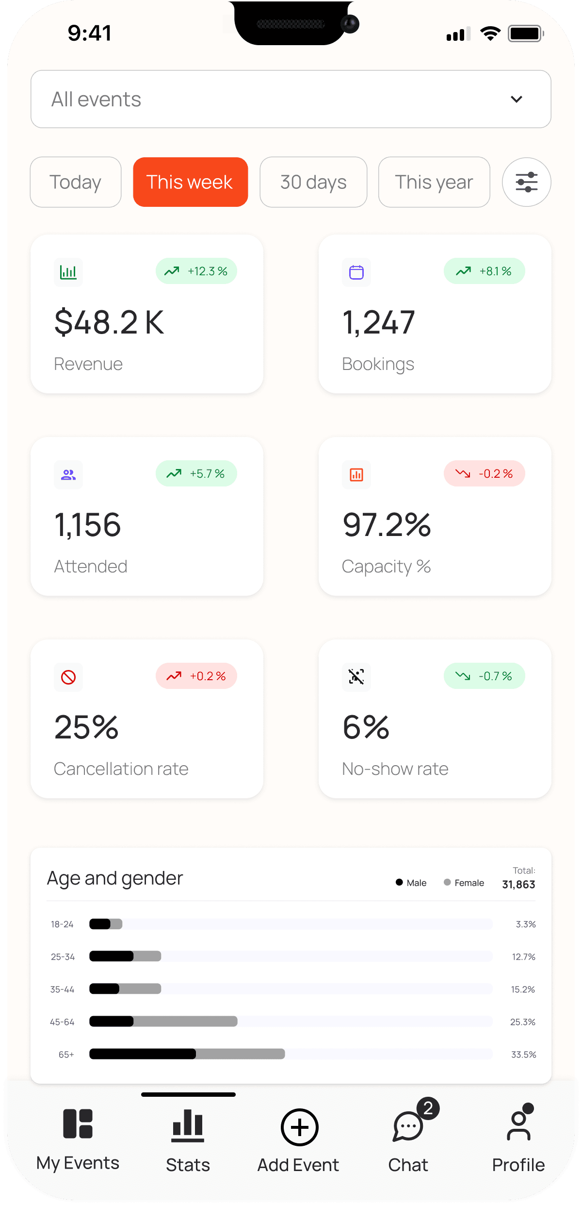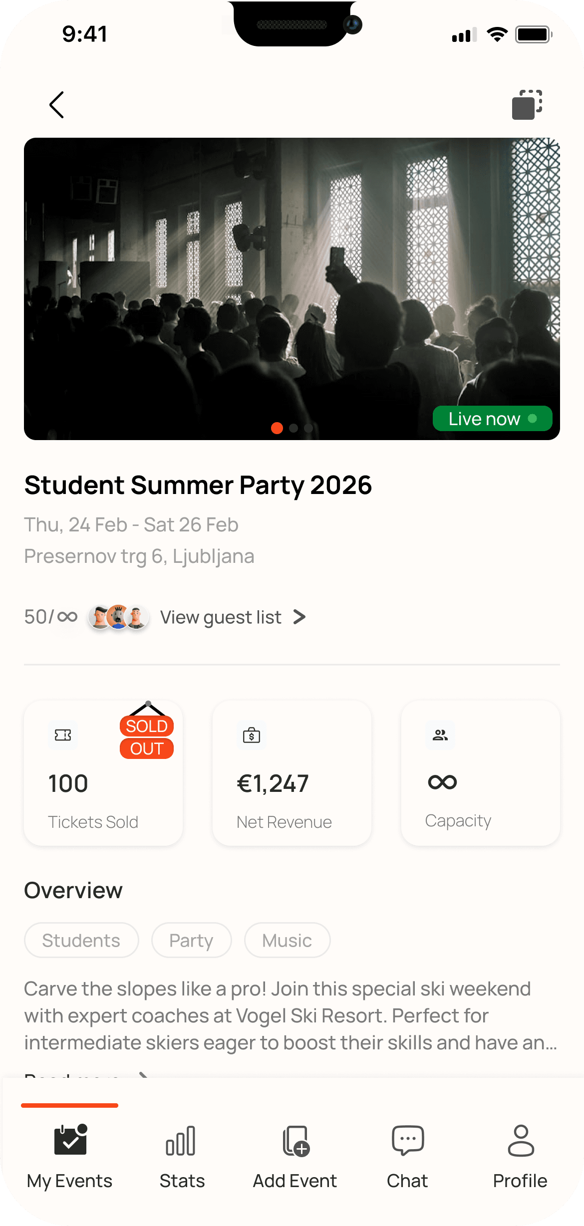 Payouts are processed after the event, and attendees leave reviews that help you grow.